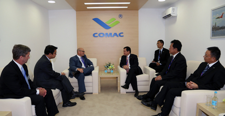 中國經(jīng)濟網(wǎng)訊 2012年7月9日,在第四十八屆范堡羅航展期間,中國商飛公司總經(jīng)理賀東風(fēng)與各航空企業(yè)界人士就深化溝通合作、促進(jìn)雙方共同發(fā)展等問(wèn)題進(jìn)行了深入交流。公司獨立董事李豐華、總會(huì )計師田民出席相關(guān)會(huì )見(jiàn)活動(dòng)。