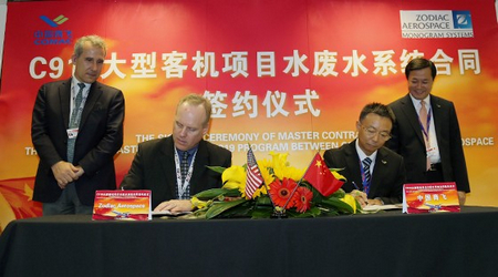 Olivier Zarrouati在致辭中感謝中國商飛公司對蒙諾格公司的信任,并期待雙方繼續加強在C919大型客機項目中的合作。賀東風(fēng)在致辭中表示,水/廢水系統采購合同的簽署,標志著(zhù)雙方的合作進(jìn)入了一個(gè)新的階段。高水平的水/廢水系統將給C919大型客機帶來(lái)強大的市場(chǎng)競爭力,同時(shí)將進(jìn)一步推動(dòng)雙方的深入合作。希望雙方同舟共濟、齊心協(xié)力, C919大型客機項目取得成功,實(shí)現互利共贏(yíng)。