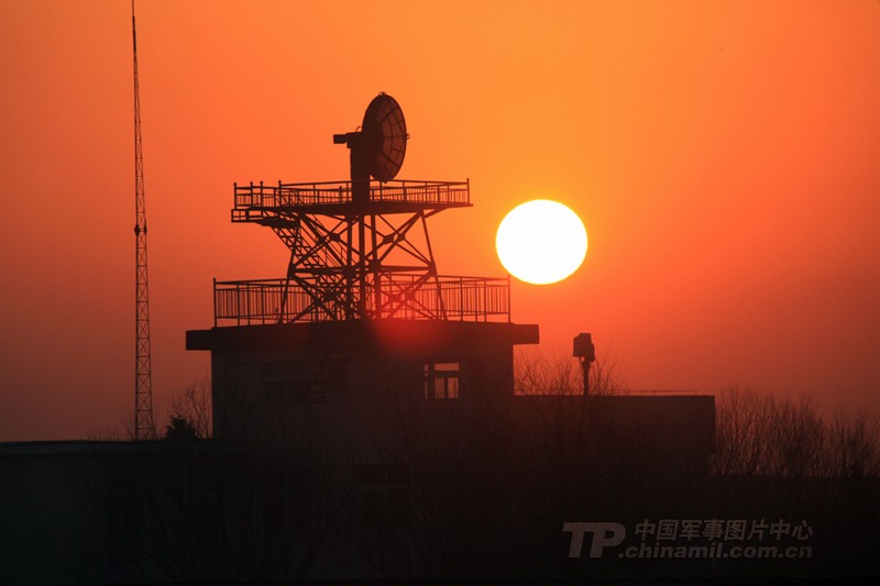 朝陽(yáng)劃過(guò)氣象雷達的一角,寧靜的外場(chǎng)變的越來(lái)越喧囂。苑小偉 攝