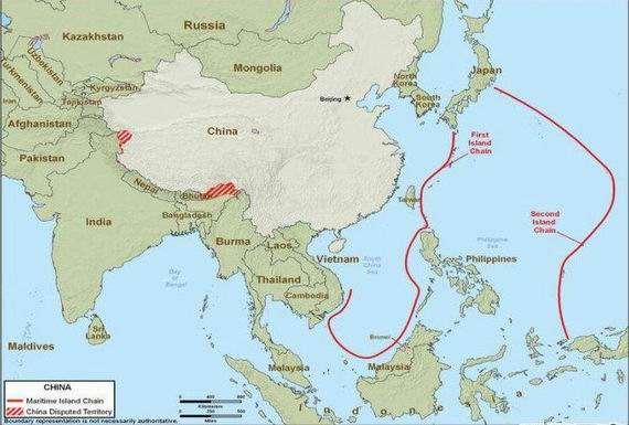 外媒制作的第一島鏈與第二島鏈示意圖,不代表本網(wǎng)觀(guān)點(diǎn)。