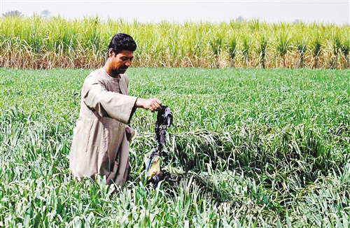 2月26日,在盧克索附近,救援人員在發(fā)生熱氣球爆炸的事故現場(chǎng)查看熱氣球殘骸。