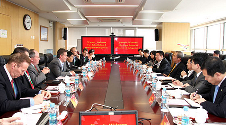 中國經(jīng)濟網(wǎng)訊 2013年5月7日,中國商飛公司副總經(jīng)理吳光輝會(huì )見(jiàn)了來(lái)訪(fǎng)的霍尼韋爾航空航天集團首席執行官馬天明和全球民用飛機總裁張博騰一行,雙方進(jìn)行了友好而深入的會(huì )談。