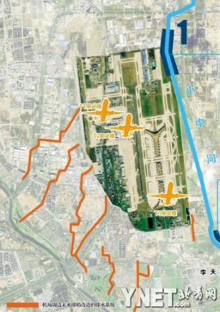 同時(shí),《首都機場(chǎng)周邊排水規劃》的初步設想是對首都機場(chǎng)東西部排水障礙“各個(gè)擊破”:為機場(chǎng)東部T1航站樓排水的小中河中段將進(jìn)行整體筑堤,使原來(lái)的矮堤“長(cháng)個(gè)兒”,提高行洪能力;影響機場(chǎng)西部T1、T2航站樓排水的天柱東路、京密西路將在15號地鐵線(xiàn)下方挖排水溝,有效減少下游的匯水。在小中河順義與通州交界處的李天路南側及北側還擬增設250公頃的蓄滯洪區。該區域可以種樹(shù)、種莊稼,但不允許有建筑。在緊急時(shí)刻,用于泄洪。