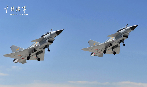 。吩律涎,海軍東海艦隊航空兵某團數架?chē)a(chǎn)某新型三代戰機組成戰斗隊形,到達攻擊戰位后,機翼下的導彈激射而出!稗Z、轟、轟!”導彈從不同方位命中目標,海面上瞬間燃起熊熊烈火。