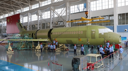 2013年7月25日至29日,ARJ21-700飛機107架機先后完成了中機身、機翼對接任務(wù),中后機、垂尾對接任務(wù),以及前機身、機頭對接任務(wù),正式進(jìn)入全機對接階段。接下來(lái),107架機將進(jìn)行測量定位、預裝配、全機氣密和淋雨等相關(guān)試驗。
