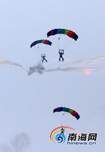 跳傘員在空中玩起煙花特技,精彩紛呈(南海網(wǎng)記者張茂攝)
