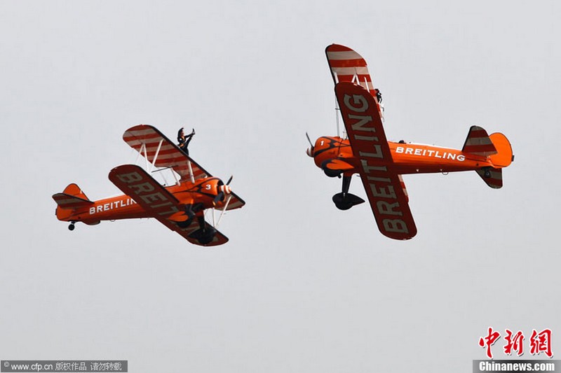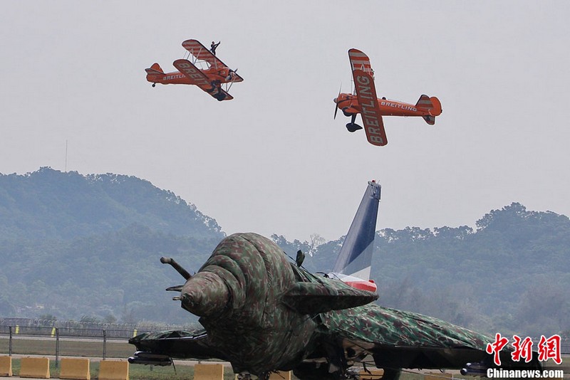 承辦中國航展的珠海航展有限公司副總經(jīng)理楊賢剛介紹,第九屆中國珠海航展有來(lái)自39個(gè)國家和地區近650家中外航空航天廠(chǎng)商參展,根據最新的參展飛機清單,本屆航展上的各類(lèi)飛行器實(shí)物將為114架,包括殲擊機、直升機、客機、公務(wù)機、水陸兩棲多用途飛機等,有近50架將動(dòng)態(tài)飛行展示;飛行表演將集中在 11月16日-18日。圖為一臺被包裹得嚴嚴實(shí)實(shí)的“棕子機”,其上方則是“百年靈”機翼行走飛行特技表演隊在進(jìn)行訓練。