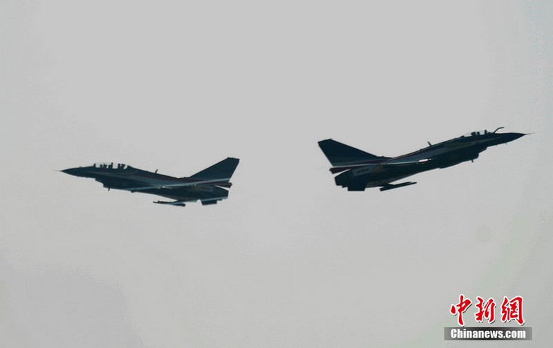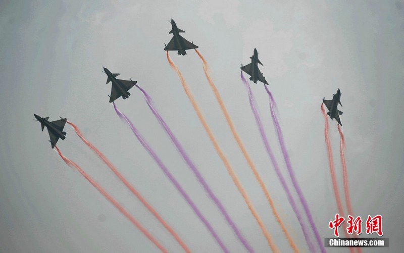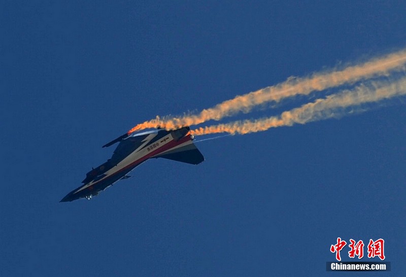 中國空軍八一飛行表演隊上演了“向上開(kāi)花”、“雙機對沖”、“小半徑轉圈”等精彩動(dòng)作。記者曾多次觀(guān)看過(guò)八一飛行表演隊的表演,而這次是最精彩的一次!