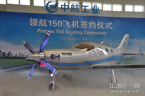 中國經(jīng)濟網(wǎng)珠海航展特派記者團記者段丹峰 劉瑾11月12日報道 12日下午,中航通用飛機有限責任公司在珠;嘏e行我國首款具有自主知識產(chǎn)權的全復合材料輕型公務(wù)機——領(lǐng)航150下線(xiàn)揭幕暨簽約儀式;并在儀式現場(chǎng)喜獲8架用戶(hù)訂單。