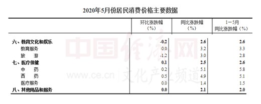 對比2019年5月份數據,2019年5月份居民消費價(jià)格同比上漲2.7%,環(huán)比持平。其中,教育文化和娛樂(lè )價(jià)格同比上漲2.6%,環(huán)比下降0.2%。