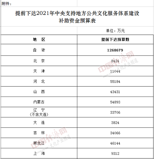 附件:提前下達2021年中央支持地方公共文化服務(wù)體系建設補助資金預算表
