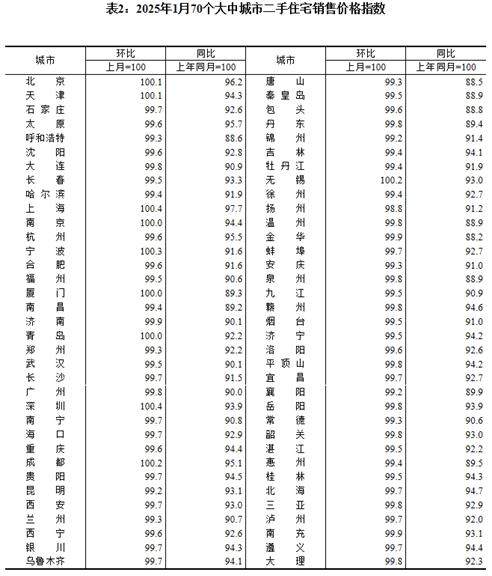1月份,二線(xiàn)城市新建商品住宅銷(xiāo)售價(jià)格環(huán)比由上月持平轉為上漲0.1%,為2023年6月以來(lái)首次上漲;二手住宅環(huán)比下降0.3%,降幅與上月相同。三線(xiàn)城市新建商品住宅和二手住宅銷(xiāo)售價(jià)格環(huán)比分別下降0.2%和0.4%,降幅均與上月相同。
