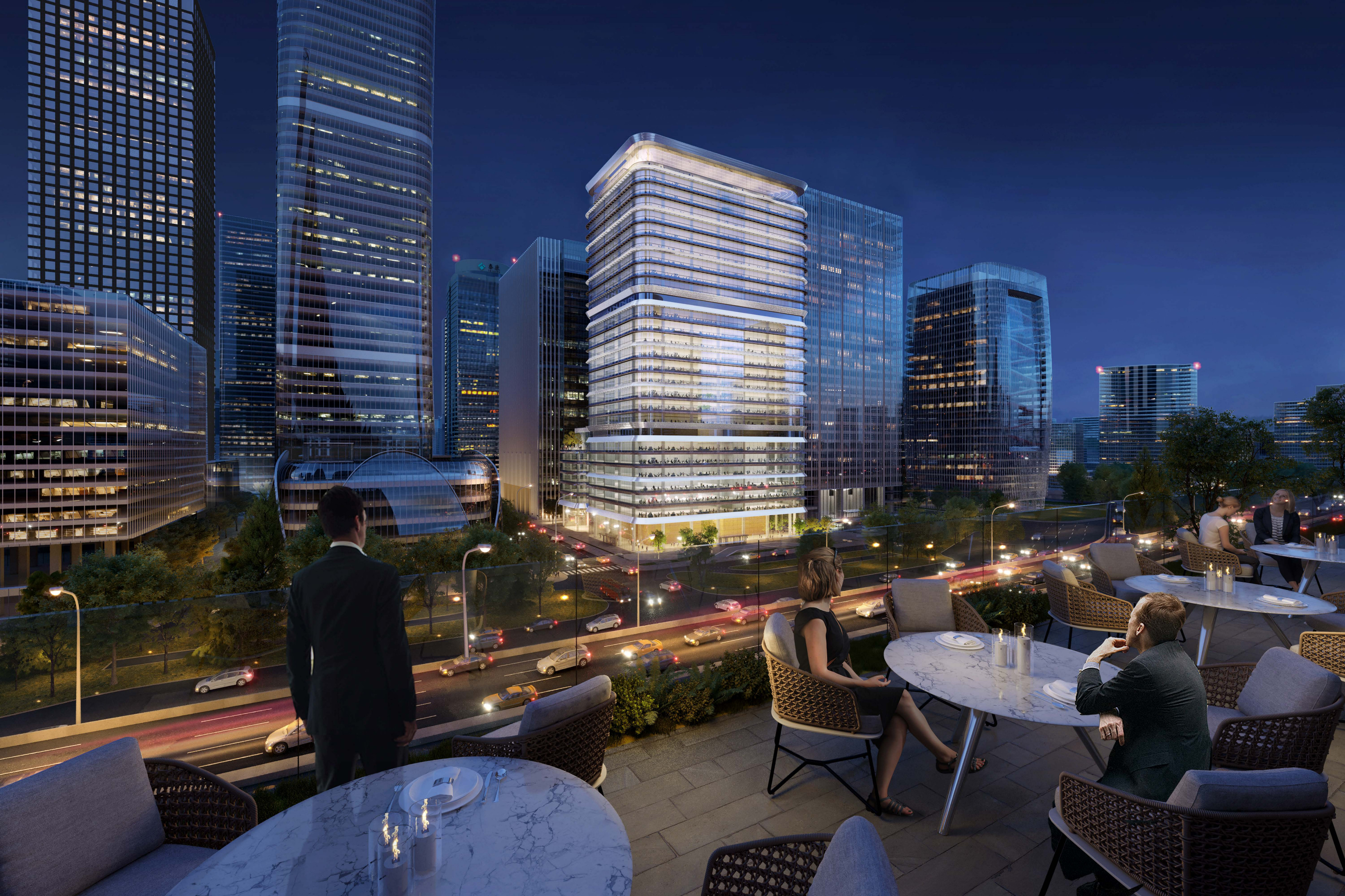 據介紹,Z3項目總建筑面積約17.5萬(wàn)平米,涵蓋一棟140米高的超甲級辦公樓及45米高的連體配套裙樓。項目位于東三環(huán)首排,占位CBD正心,對望國貿,北鄰CCTV。