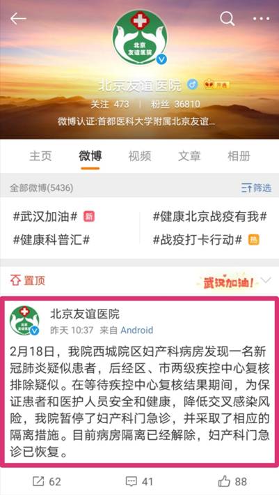 經(jīng)濟日報-中國經(jīng)濟網(wǎng)2月20日訊 (記者朱國旺 郭文培 ) 近日,有網(wǎng)友傳“北京友誼醫院一名產(chǎn)婦檢出新冠肺炎核酸陽(yáng)性,婦產(chǎn)科急診關(guān)閉”。