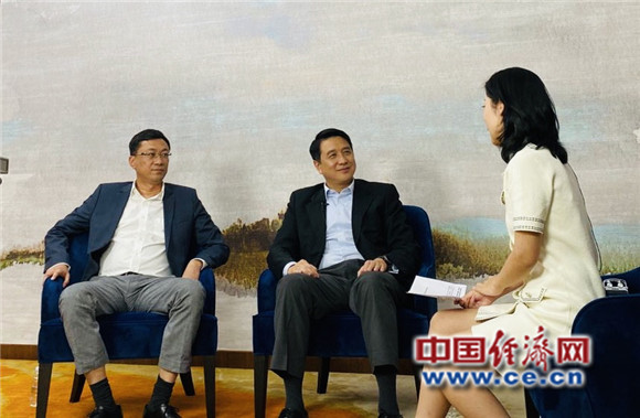 圖為國藥器械總經(jīng)理李楊(左)和GE醫療中國總裁兼CEO張軼昊接受經(jīng)濟日報-中國經(jīng)濟網(wǎng)記者采訪(fǎng)