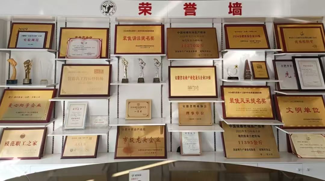 現代牧業(yè)(合肥)公司(以下簡(jiǎn)稱(chēng)“合肥牧場(chǎng)”)成立于2008年。走進(jìn)牧場(chǎng),映入眼簾的是一片開(kāi)闊而整潔的現代化養殖區域。一排排寬敞明亮的牛舍整齊排列,每一間牛舍都配備了先進(jìn)的智能化設備,為奶牛們提供了舒適的生活環(huán)境。在這里,奶牛們享受著(zhù)“貴賓級”的待遇,自動(dòng)擠奶設備高效而精準,不僅大大提高了擠奶效率,還能最大程度地保證牛奶的新鮮度和品質(zhì)。