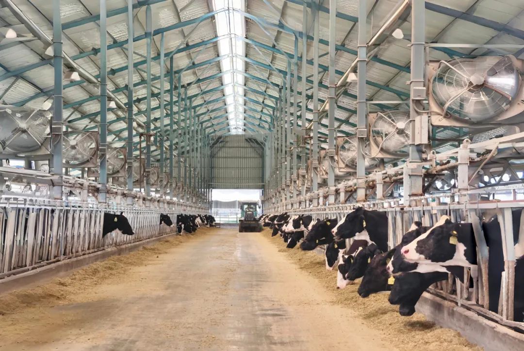 自動(dòng)感應風(fēng)機、精準噴淋裝置等智能設備隨環(huán)境自動(dòng)調節,為奶牛打造舒適家園,確保每一滴牛奶源自健康奶牛。
