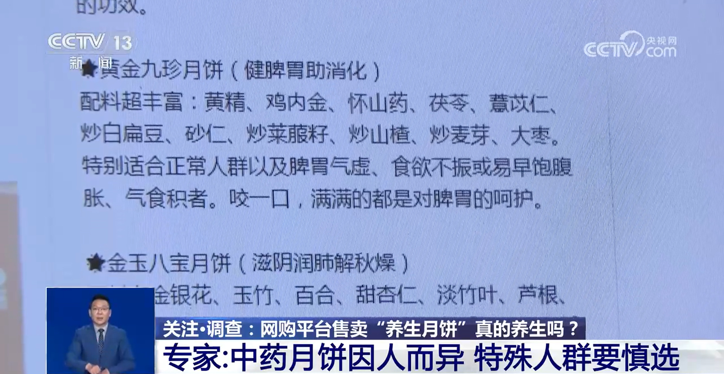 專(zhuān)家指出,網(wǎng)絡(luò )上銷(xiāo)售的部分藥膳月餅宣傳的實(shí)際效果值得商榷。