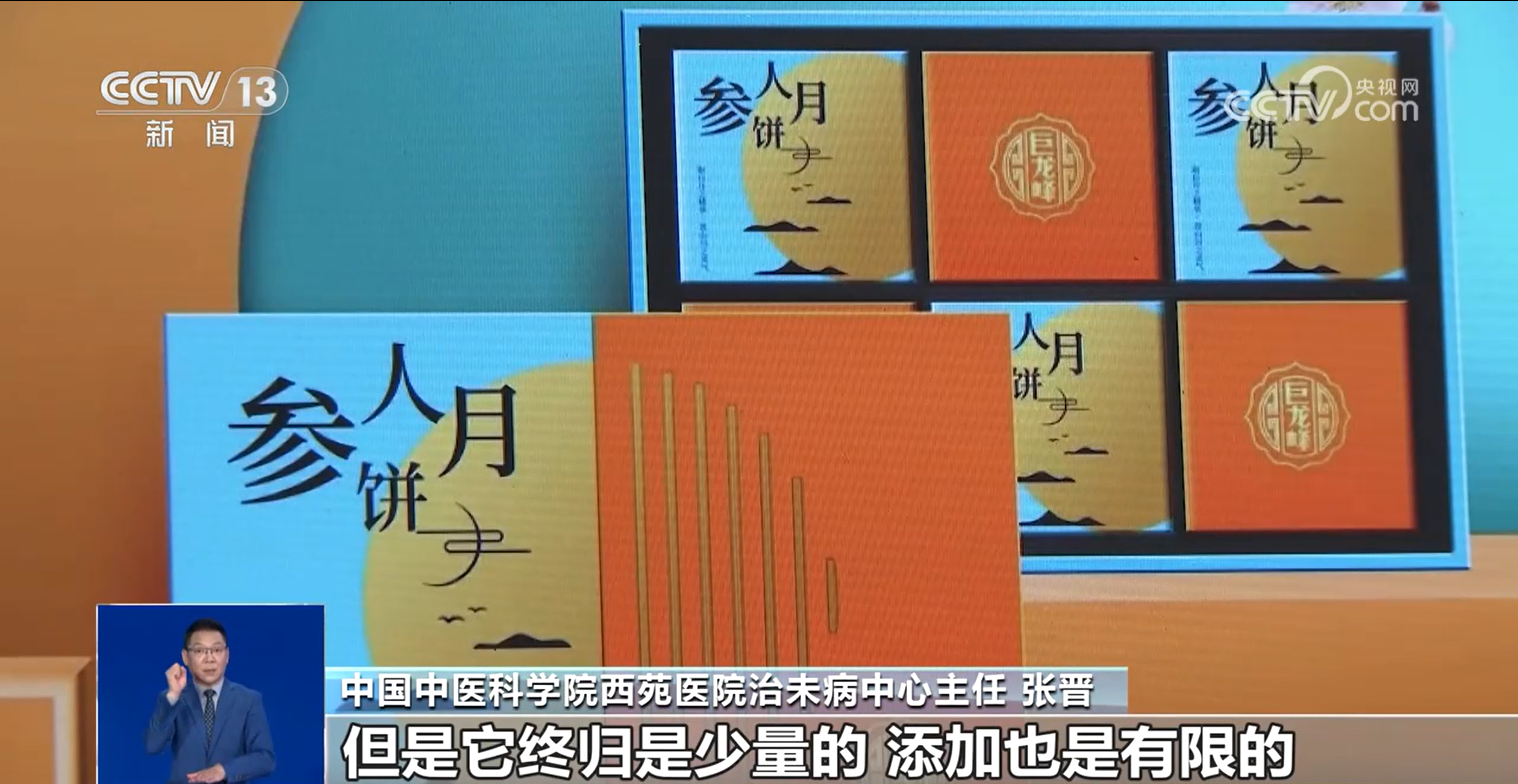 中國中醫科學(xué)院西苑醫院治未病中心主任 張晉:我們中醫講叫是藥三分毒,凡是比如說(shuō)天麻、人參,還有像紅花、三七這一些,它本身就是有比如說(shuō)補氣活血,還有補益肝腎的作用。我們的月餅它是一個(gè)普通的食品,如果我在家自己制作月餅,我們根據自己的體質(zhì)去選擇,我想放三七,然后放一點(diǎn)人參,或者放一點(diǎn)蟲(chóng)草或者放點(diǎn)天麻,我們因人而異是可以的,但是把這些藥材放到我們普通食品的月餅里面進(jìn)行銷(xiāo)售,這個(gè)大家就要謹慎選擇了。