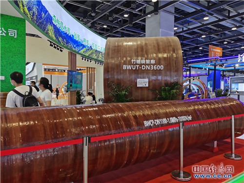 一家企業(yè)展示的竹纏繞復合材料管廊。竹纏繞復合材料低碳節能,兼具減碳、固碳、儲碳功能。