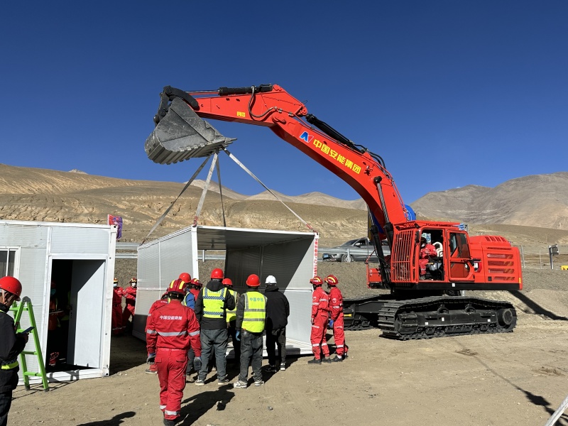 1月9日,在前方指揮部的統一調度下,繼完成受損房屋搜尋、用電需求保障、安置帳篷搭設、協(xié)助轉運重傷員等任務(wù)后,為了保障受災群眾溫暖過(guò)冬,中國安能在嘎旦村、玉白村方向組織開(kāi)展場(chǎng)地平整作業(yè),并進(jìn)行活動(dòng)板房的搭設。在嘎旦村投入60余人、10余臺重型救援裝備全力投入板房搭設工作。過(guò)程中,挖掘機、吊機等重型裝備與救援人員共同協(xié)作,搭建工作進(jìn)展迅速。