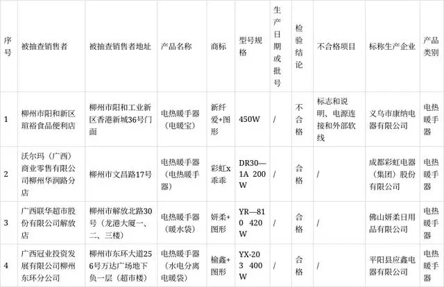 廣西柳州市市場(chǎng)監督管理局通報4批次電熱暖手袋產(chǎn)品監督抽查情況