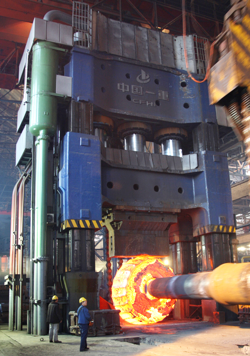 在火電、水電等一些大型鑄鍛件制造方面,經(jīng)過(guò)不懈努力,中國一重已經(jīng)成為國內生產(chǎn)300~1000MW火電機組大型鍛件能力最強的企業(yè),并具備制造700MW水力發(fā)電站機組葉片、上冠、下環(huán)、水輪機大軸等鑄鍛件的能力!